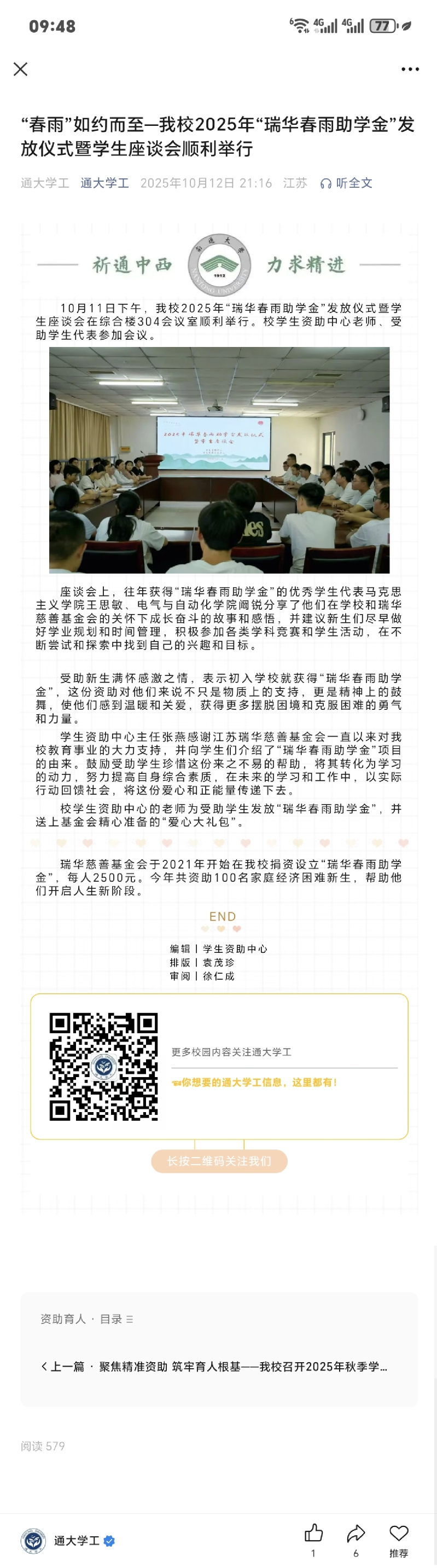 “春雨”如约而至一我校2025年“瑞华春雨助学金”发放仪式暨学生座谈会顺利举行