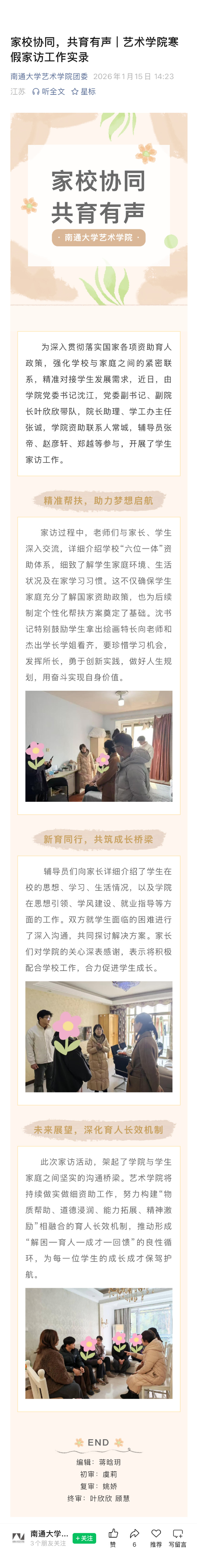家校协同,共育有声 艺术学院寒假家访工作实录